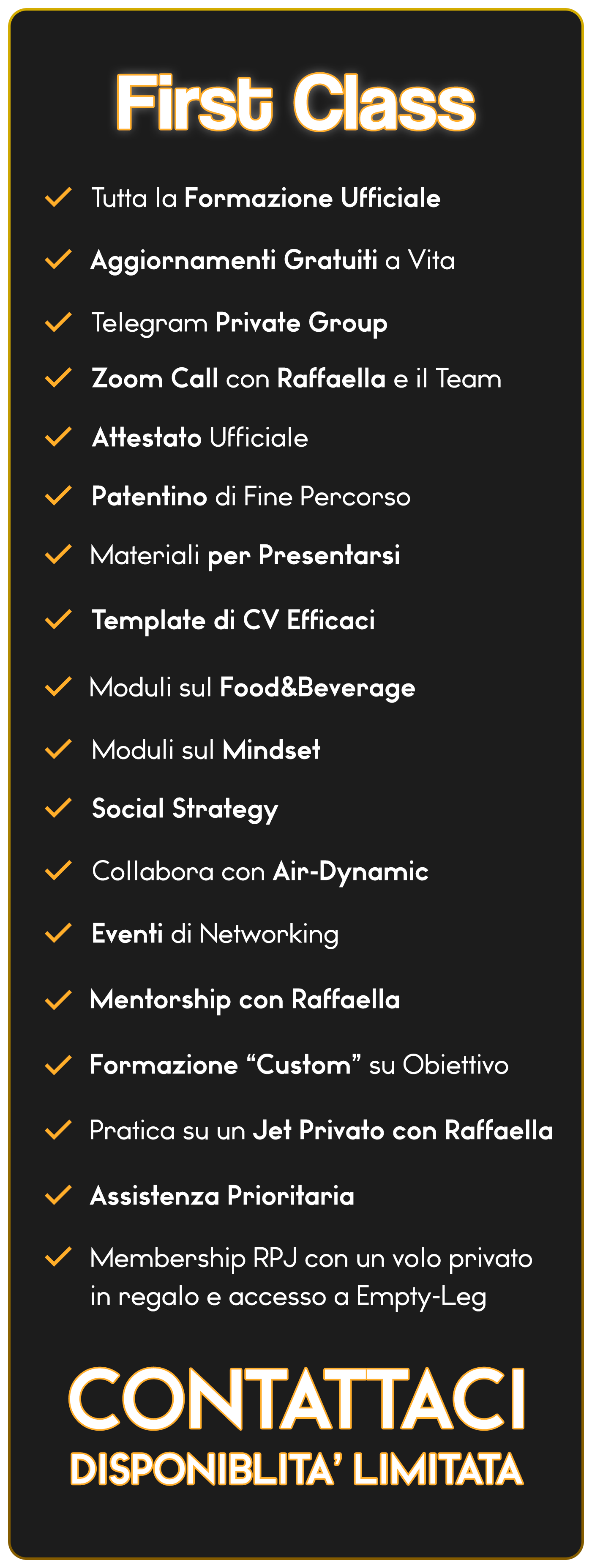 Al termine riceverai un riconoscimento ufficiale e la possibilità di collaborare con RaffaPrivateJet.